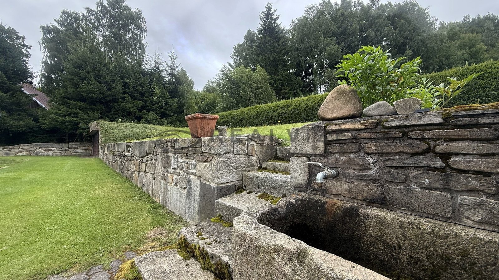 elektřina zavedena v mědi, voda ze studny, ohřev vody bojlerem, odpady septik.
