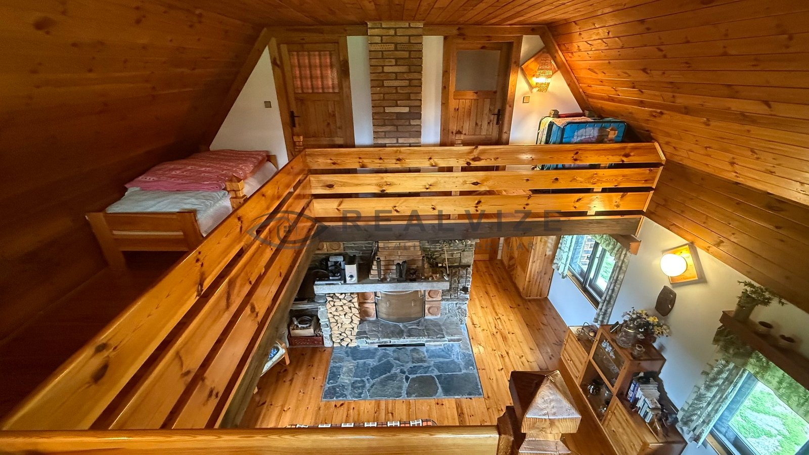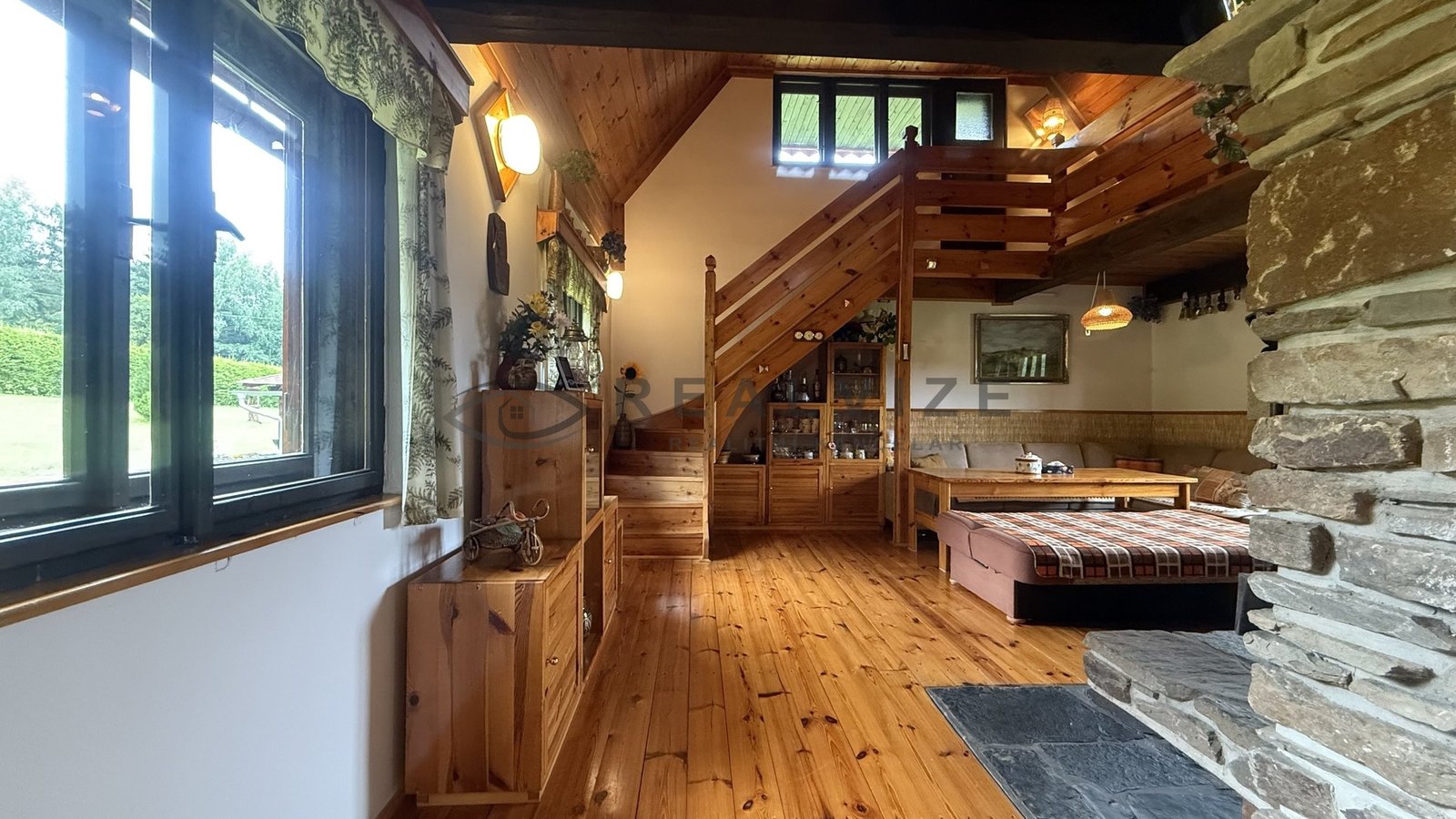 Zděná chata – zastavěná plocha 93 m2, (borovanská cihla), stropy dřevěné,
