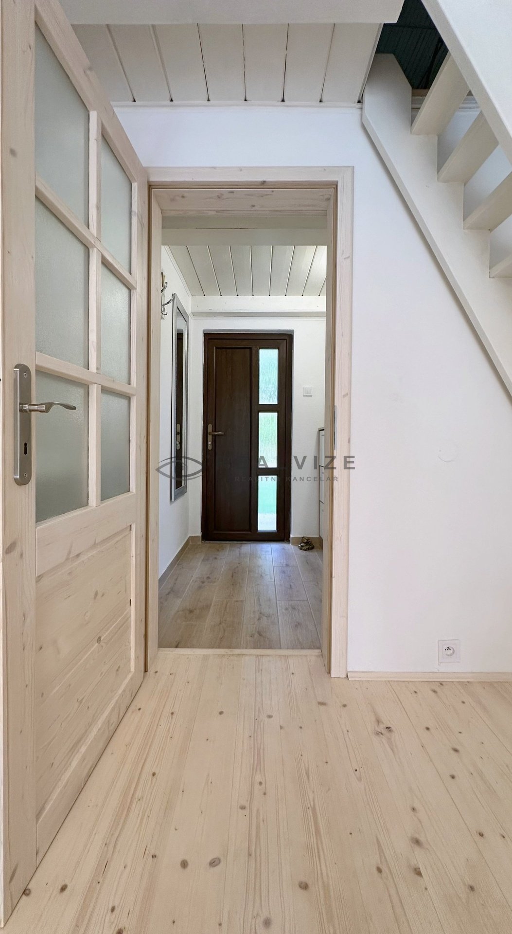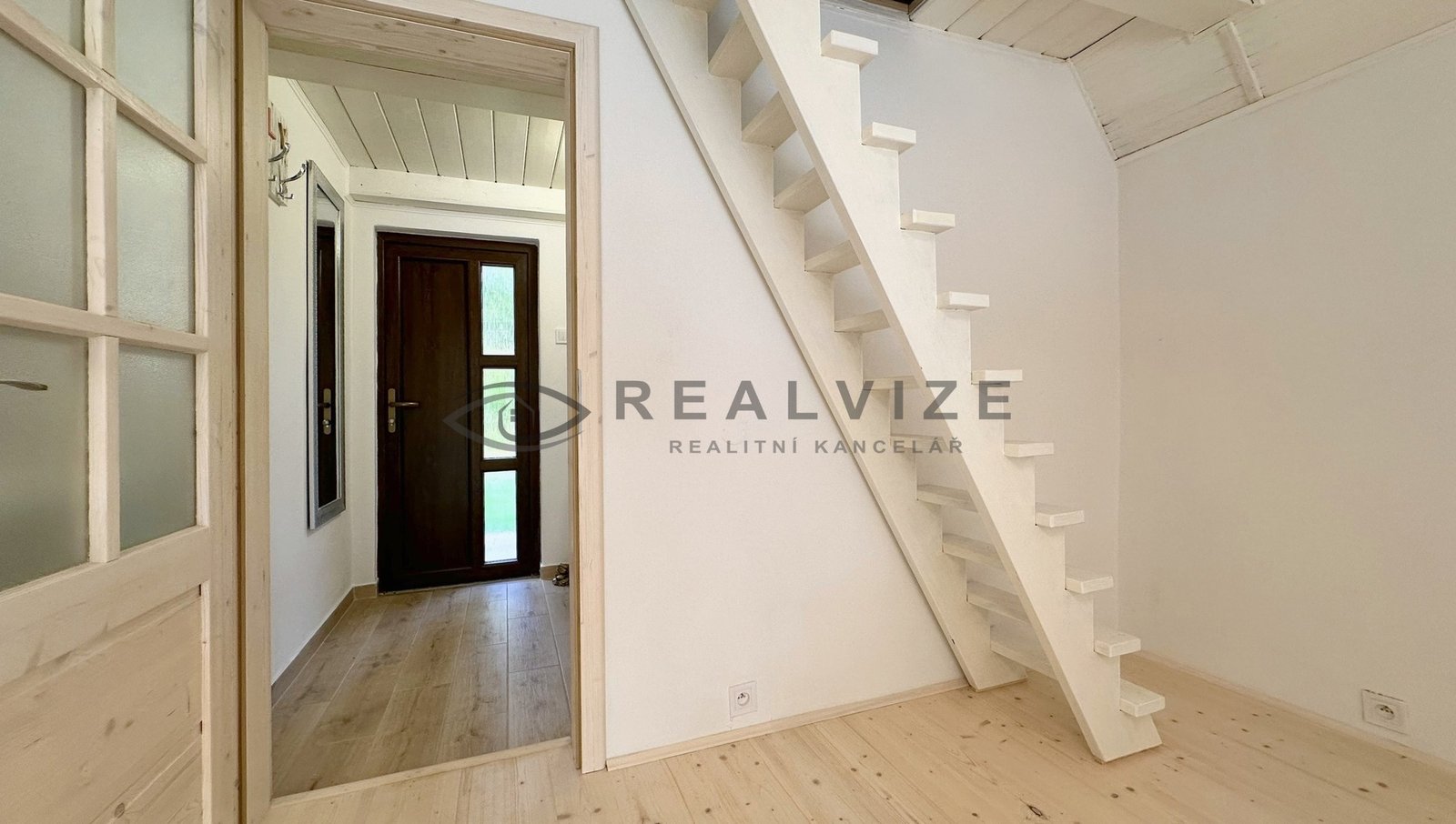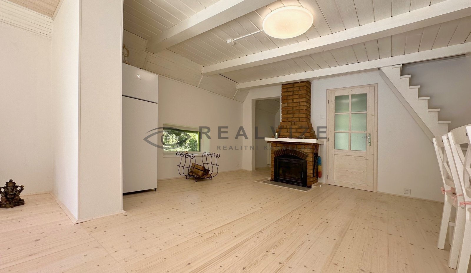 Chata je zrenovována velmi vkusně – vše laděno do světlých odstínů a dřeva.