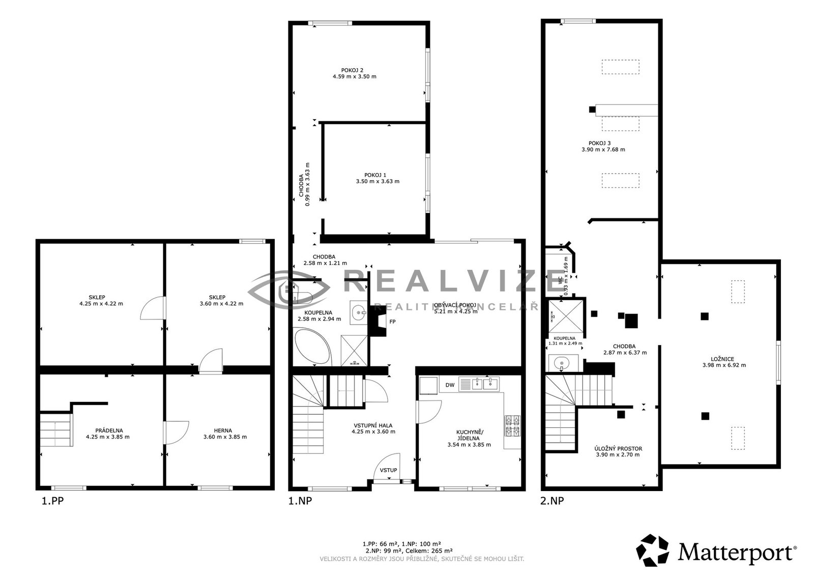 Součástí domu je také podzemní patro o třech místnostech, které lze využít jako sklep, prádelnu nebo třeba hernu.