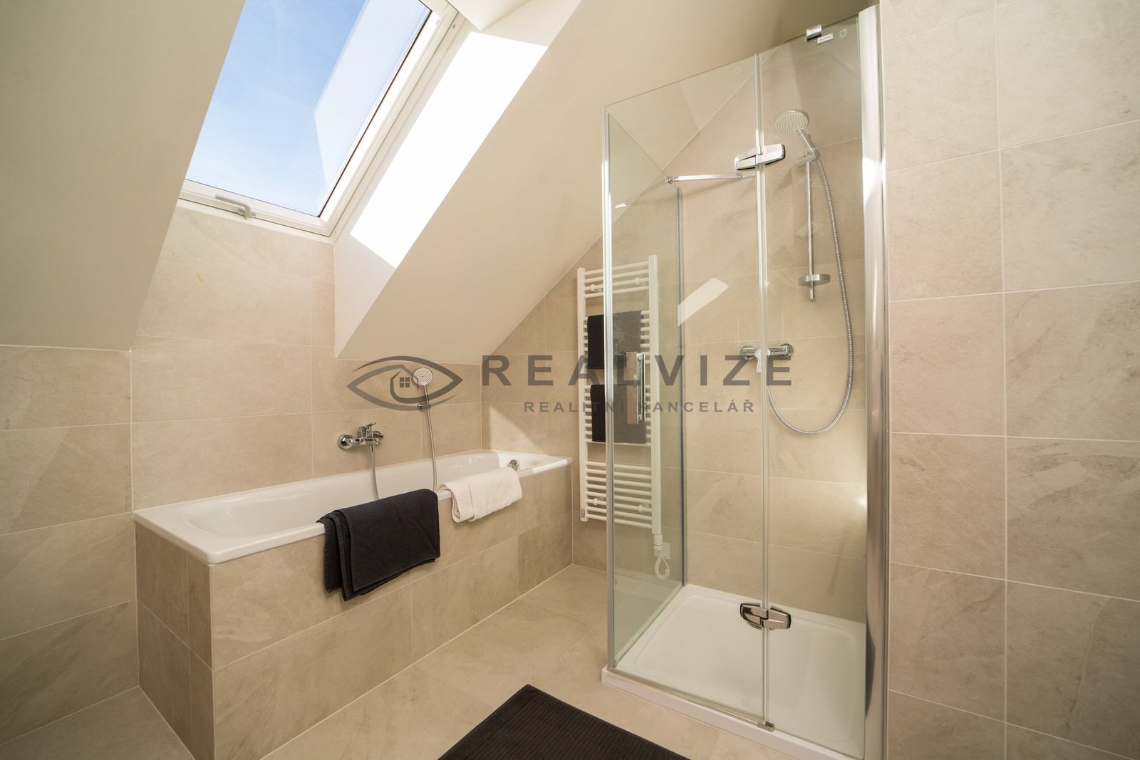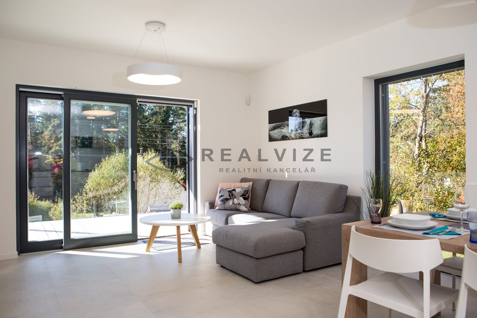 Technologie: Vytápění elektrickým podlahovým topením s možností dálkového řízení, fotovoltaika s akumulací, klimatizace, nabíječka na elektroauto, elektronický zabezpečovací systém, venkovní žaluzie.